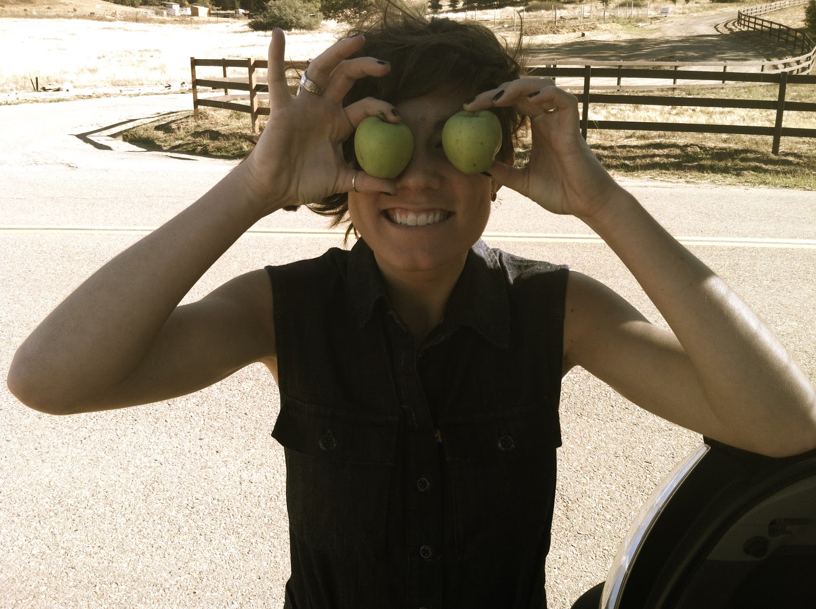 And we pose on the side of the rode like a bunch of kooks to get a photo of our sticks and apples